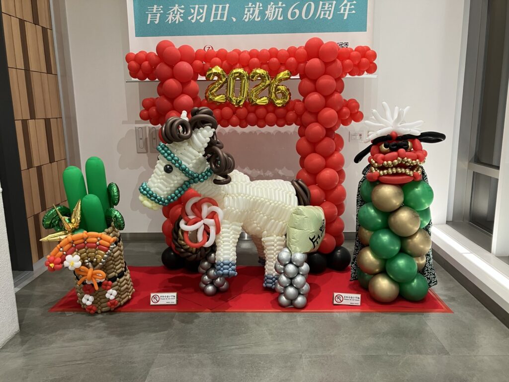 年末年始に青森空港を訪れたところ、見事なバルーンアートのお正月飾りを見つけました!